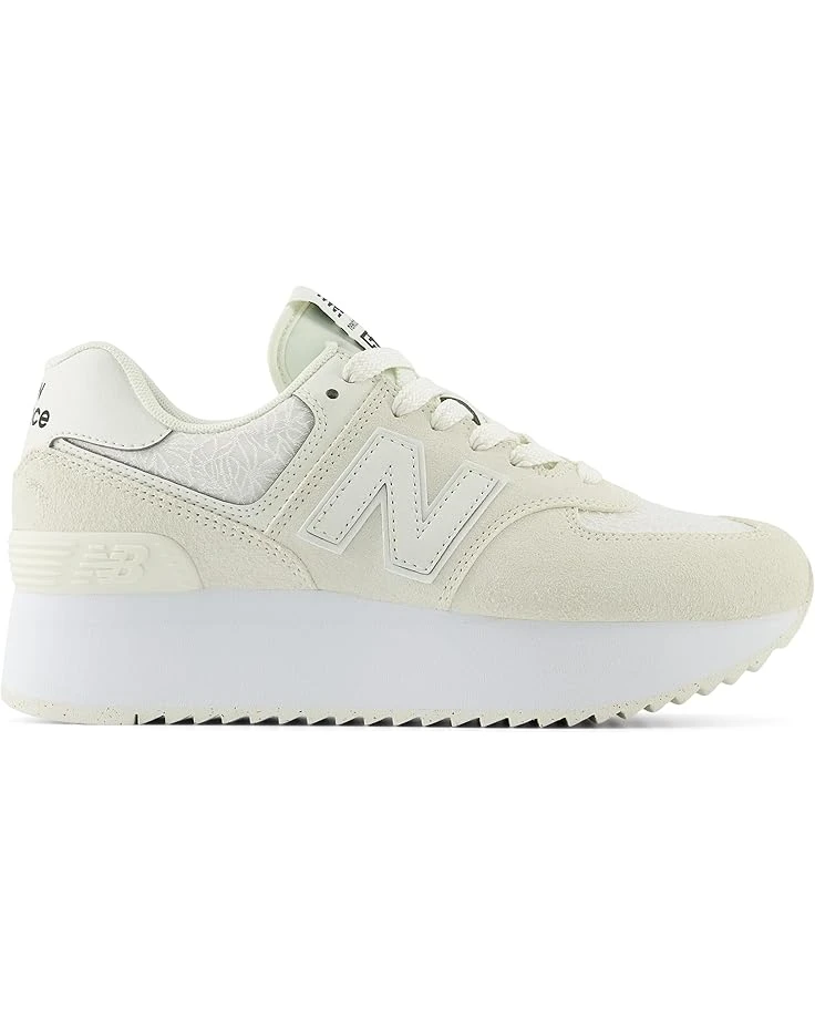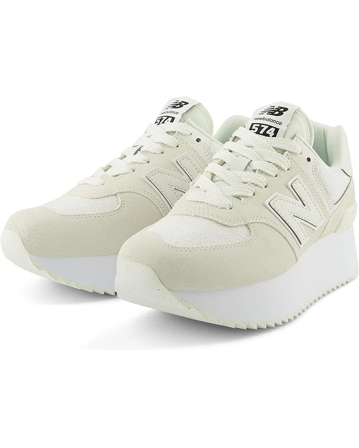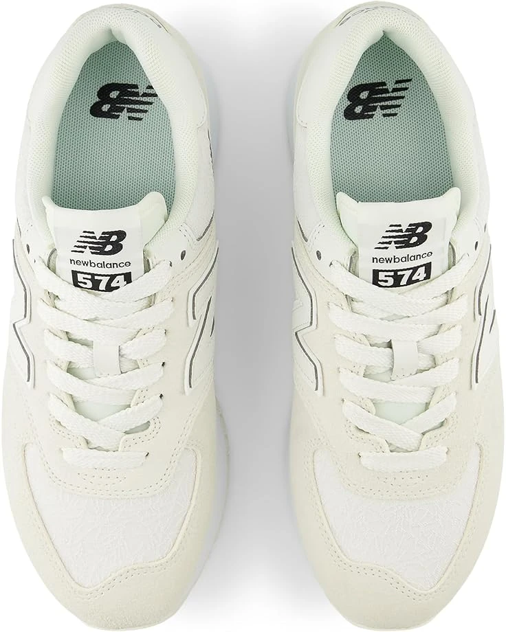 - Add a sporty style to your look wearing the New Balance® Classics 574+ Sneakers, featuring a trendy low-top design with a lace-up closure. The round-toe sneakers are crafted with a a suede or mesh upper with signature New Balance® logo detail on the side panel, cotton lining, and a cushioned footbed.