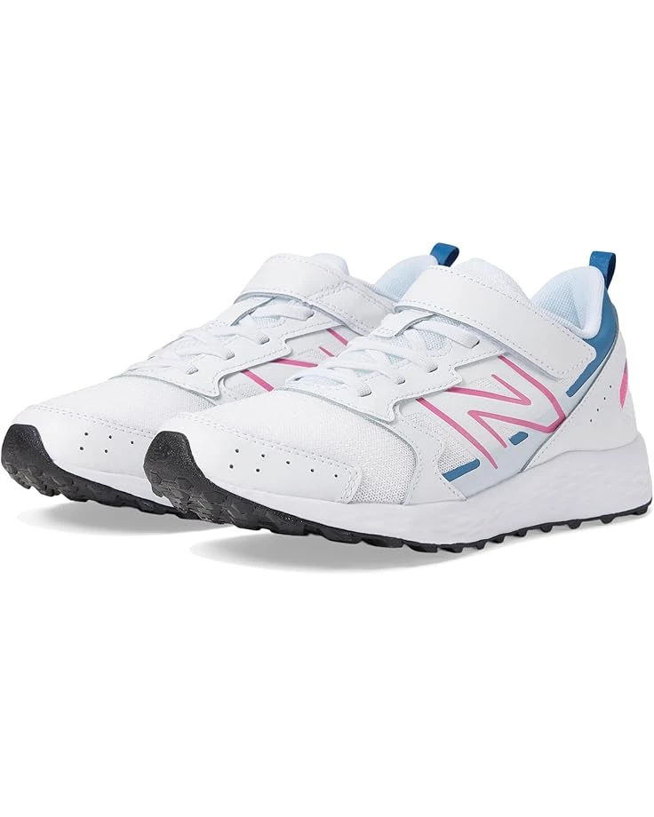 - Let your kids enjoy the perfect blend of style, support, and convenience in the New Balance® Kids Fresh Foam 650 Bungee Lace with Top Strap offers a breathable mesh upper for all-day comfort, paired with a soft cotton lining and insole to keep little feet cozy. The durable rubber outsole ensures reliable traction on any surface, while the convenient hook-and-loop closure makes it easy for kids to put on and take off. The round toe design provides ample space for growing feet, making these shoes perfect for active adventures and everyday wear.